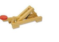 Auch wenn unser Katapult den Steinschleudern der Wikinger nachempfunden ist, so ist doch eines klar: Wenn wir einen Wettbewerb im Weitschleudern machen, dann verwenden wir lieber weiche Bälle etc. Aber bevor wir feststellen können, welche "Wurfobjekte" am weitesten fliegen, müssen wir die Wurfschleuder erst einmal zusammenbauen.