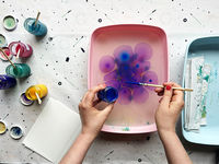 Marmorieren ist eine der kunstvollsten Basteltechniken. Ihr könnt damit verschiedenste Materialien und Gegenstände verschönern - von Papier über Holz bis hin zu Stoff. Beim Marmorieren geht es darum, mit Farben spektakuläre Muster zu kreieren. Das Grundprinzip dieser Basteltechnik ist nicht schwierig. Wir baden heute Salatbesteck aus Holz in den Farben und schaffen so echte Unikate, die ihr jeden Tag benutzen könnt.