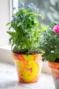 Marmorieren ist eine der kunstvollsten Basteltechniken. Ihr könnt damit verschiedenste Materialien und Gegenstände verschönern – von Papier über Holz bis hin zu Stoff. Beim Marmorieren geht es darum, mit Farben spektakuläre Muster zu kreieren. Das Grundprinzip dieser Basteltechnik ist nicht schwierig. Wir baden heute unsere Blumentöpfe in den Farben und schaffen so echte Unikate.
