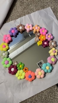 Spieglein, Spieglein an der Wand... Was für ein zauberhafter kleiner Blumen-Spiegel! Mit verschiedenen farbigen Kneten entstehen in filigraner Handarbeit duftige Blüten, die aneinandergesteckt zu einem rauschenden Blütenmeer an dem kleinen Spiegel haften.