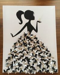 Wände verschönern mit traumhafter Wanddekoration: Dieses Wandbild mit dem hinreißenden Motiv »Schmetterlingsfrau« ist etwas für verträumte Gemüter. Schwarzer Fotokarton bildet in der Art eines Scherenschnitts die Silhouette einer schlanken und adretten Frauenfigur im Profil. Ausgestanzte Schmetterlinge in verschiedenen Farben formen das weit fallende Kleid. Das stilvolle Wandbild ist eine wunderschöne Möglichkeit, die eigenen Wände auch ohne Renovierung dekorativ zu gestalten.