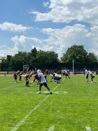 American Football und Flag-Football werden auch bei uns immer beliebter. Lerne die Grundlagen für diese tollen Sportarten in unserem Football-Camp kennen. An einem, zwei oder drei Tagen bei uns im Camp kannst du deine ersten Schritte im Football machen. Erst einmal ohne Shoulderpads und Helme, aber dafür mit richtig viel Spaß. Egal, ob du nur beim nächsten Superbowl alle mit deinem Wissen beeindrucken, im Park mal ein paar Bälle werfen oder nach den Sommerferien bei uns in der Flag- oder Tacklejugend durchstarten willst, du bist auf jeden Fall bestens vorbereitet. Beim Football kann jeder mitspielen und alle sind willkommen!